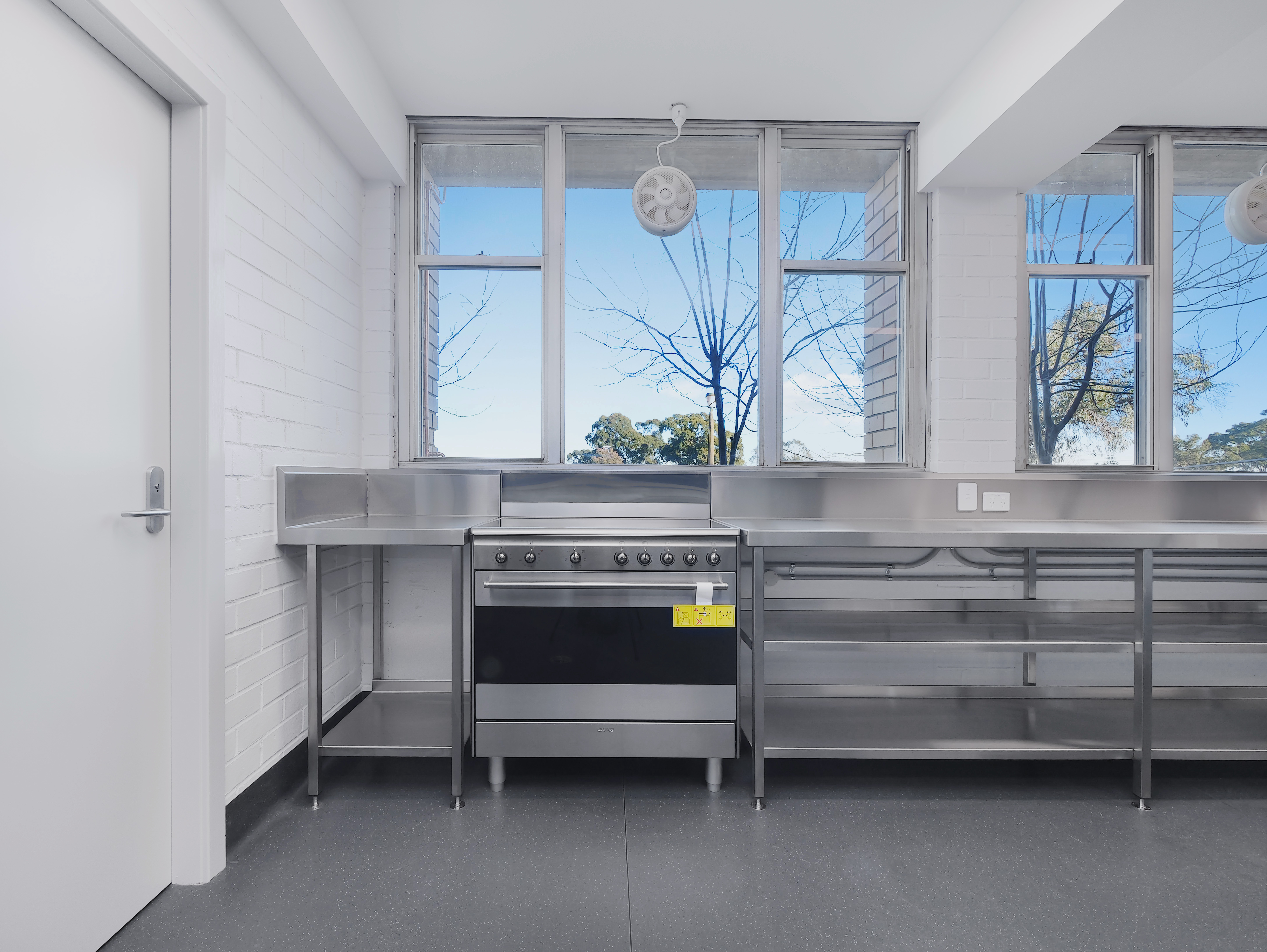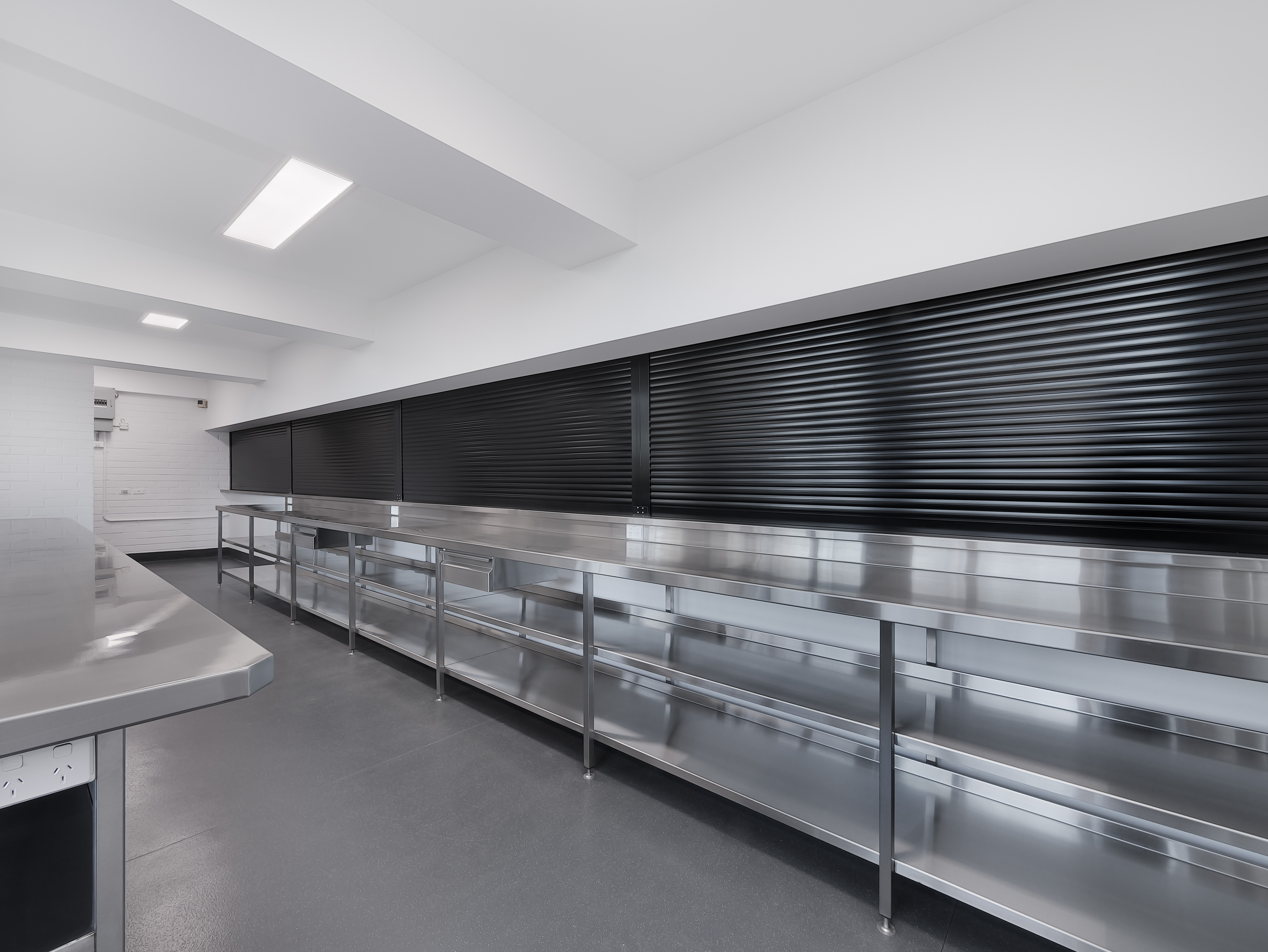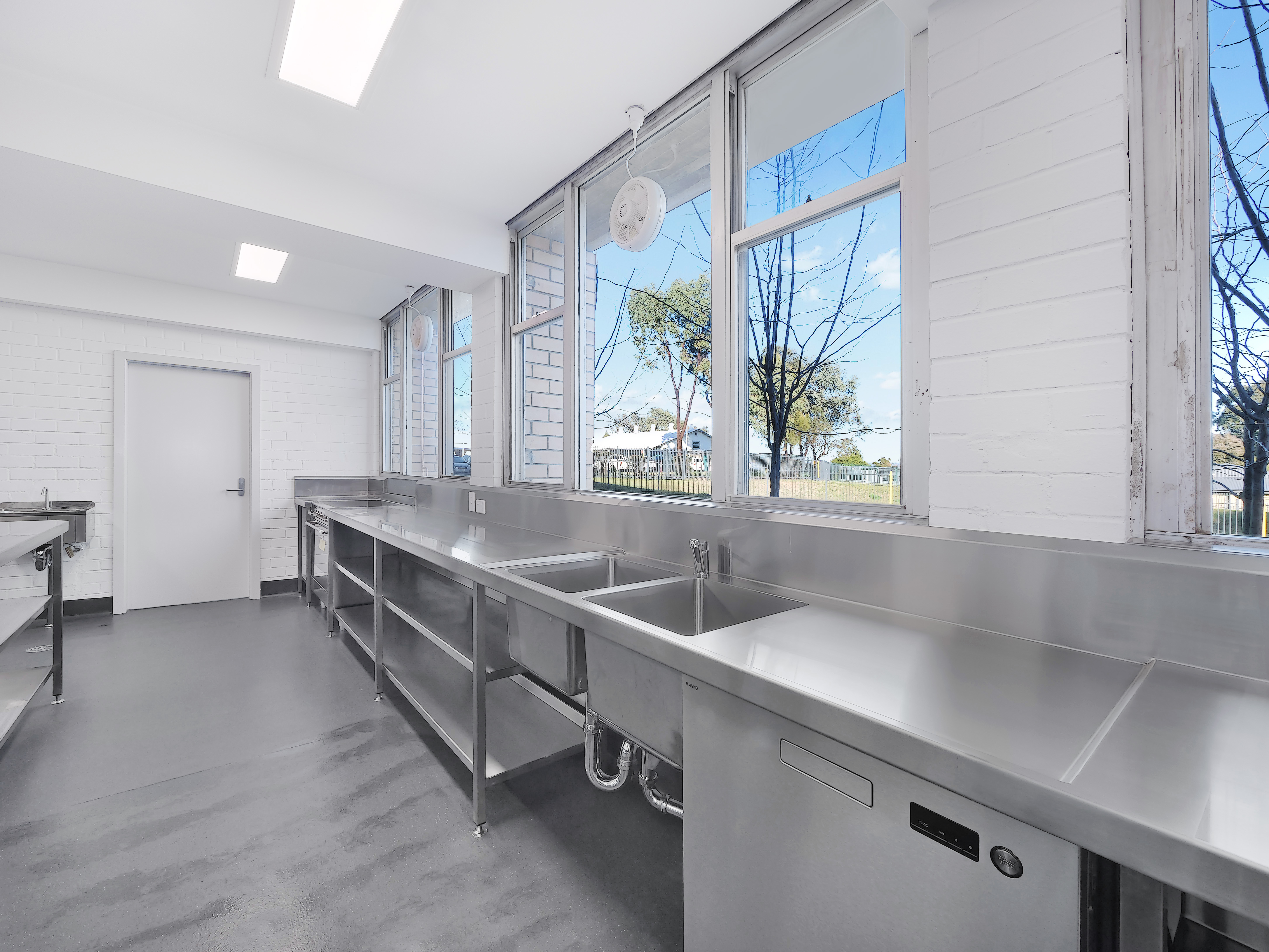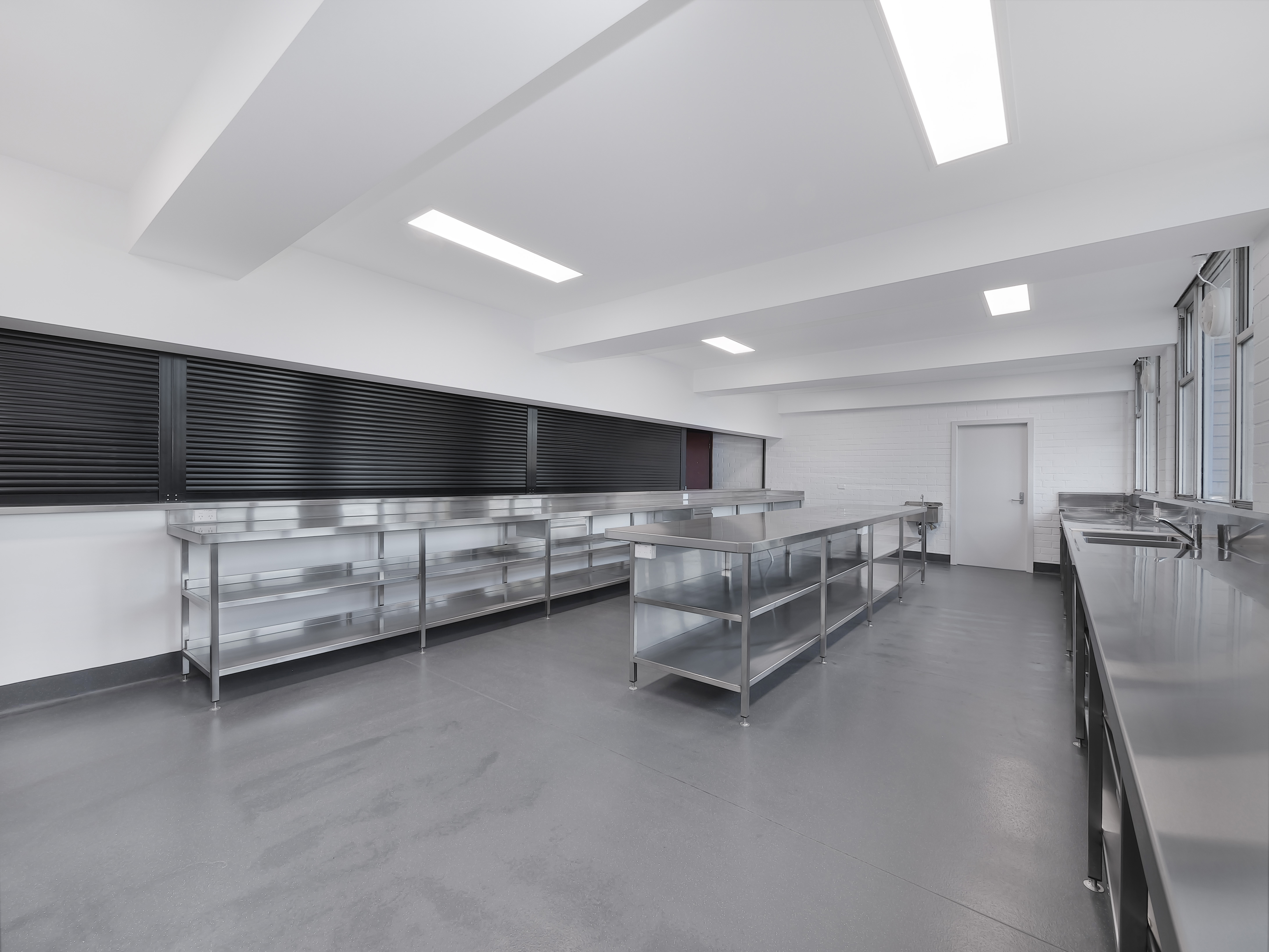 The fitout was completed with commercial-grade vinyl flooring featuring coved finishes for improved hygiene and durability, stainless steel benching and splashbacks, upgraded doors and hardware, and new shelving and storage solutions. Additional enhancements included suspended ceilings, improved security and fire safety provisions, and a full internal repaint. The result is a modern, compliant, and highly functional canteen facility designed to perform efficiently within a high-use educational environment for years to come.